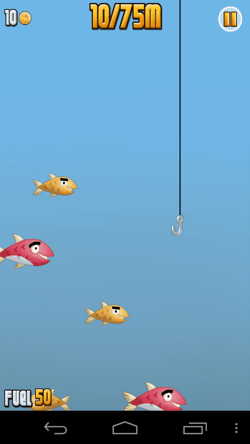 你必須透過「轉動手機本體」來控制釣線的左右移動,想辦法不要太早釣到魚,因為當你潛到釣線可以達到的最深處時,不僅能發現更多奇幻魚種,還能釣到最終的寶箱,並且當釣線往回拉時,才能順道釣上更多的大魚。