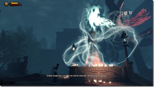 冒險與戰鬥的過程,因為伊莉莎白的主動性,玩家會很自然的與她建立起夥伴的情誼,甚至開始依賴她,而這就是「 Bioshock: Infinite (生化奇兵:無限之城)」為了之後的故事所做的最大最精采的伏筆。