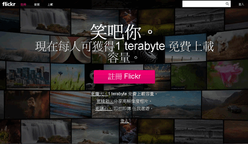 進入尚未登入的 Flickr 首頁,可以看到針對 1TB 空間的一些推廣與解釋。